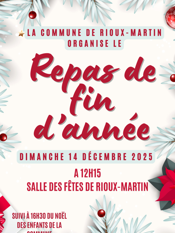 La Municipalité de Rioux-Martin organise le repas de fin d’année qui aura lieu le :